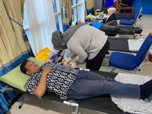 Dalam Rangka Peringatan Hari Oeang Ke-77 Tahun 2023, Ketua Pengadilan Negeri Sangatta Bapak Abraham V.V.H. Ginting, S.H., M.H., berpartisipasi mengikuti Kegiatan Donor Darah dan Pemeriksaan Kesehatan yang diselenggarakan oleh Kantor Pengawasan dan Pelayanan Bea dan Cukai Sangatta.